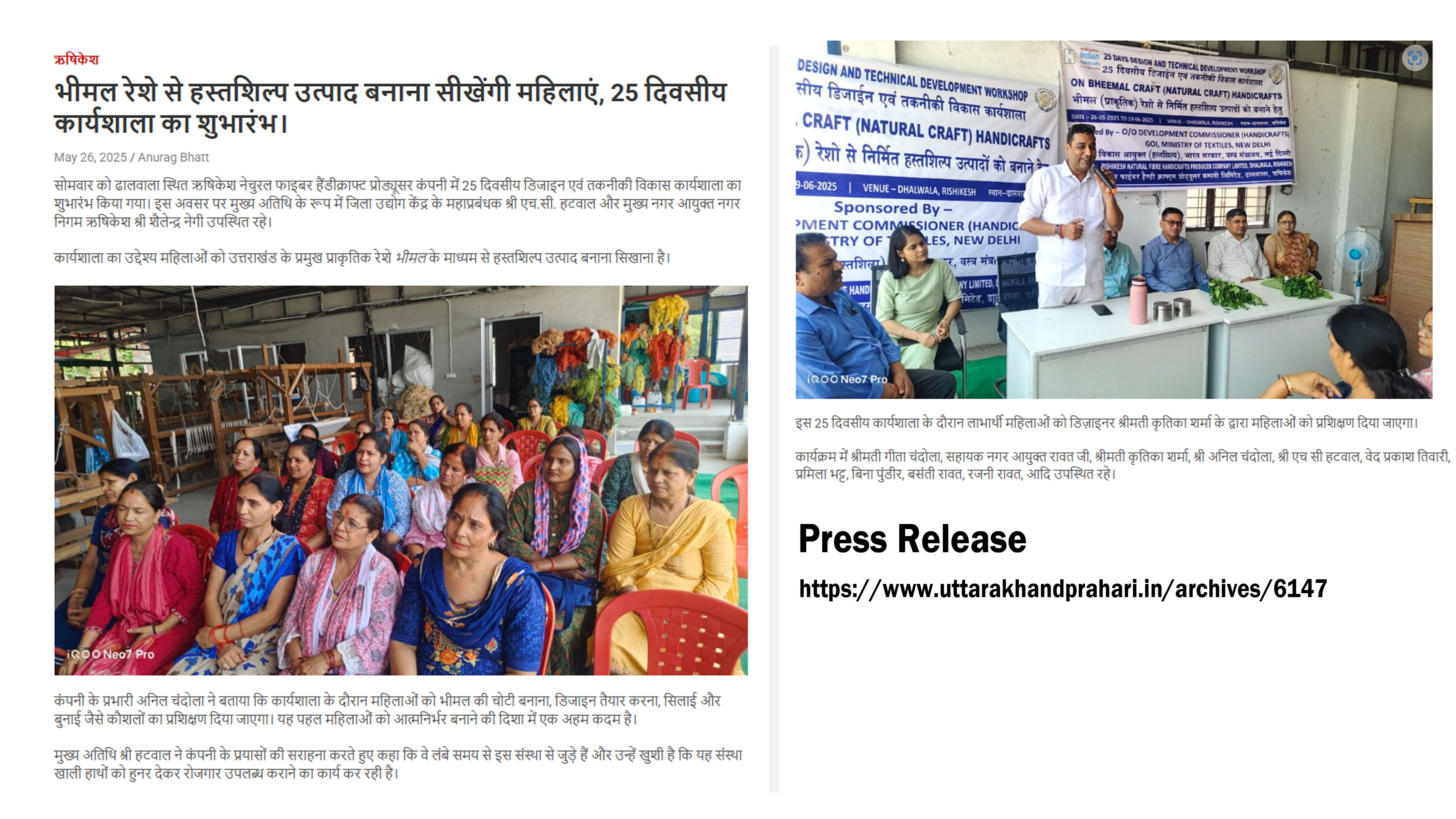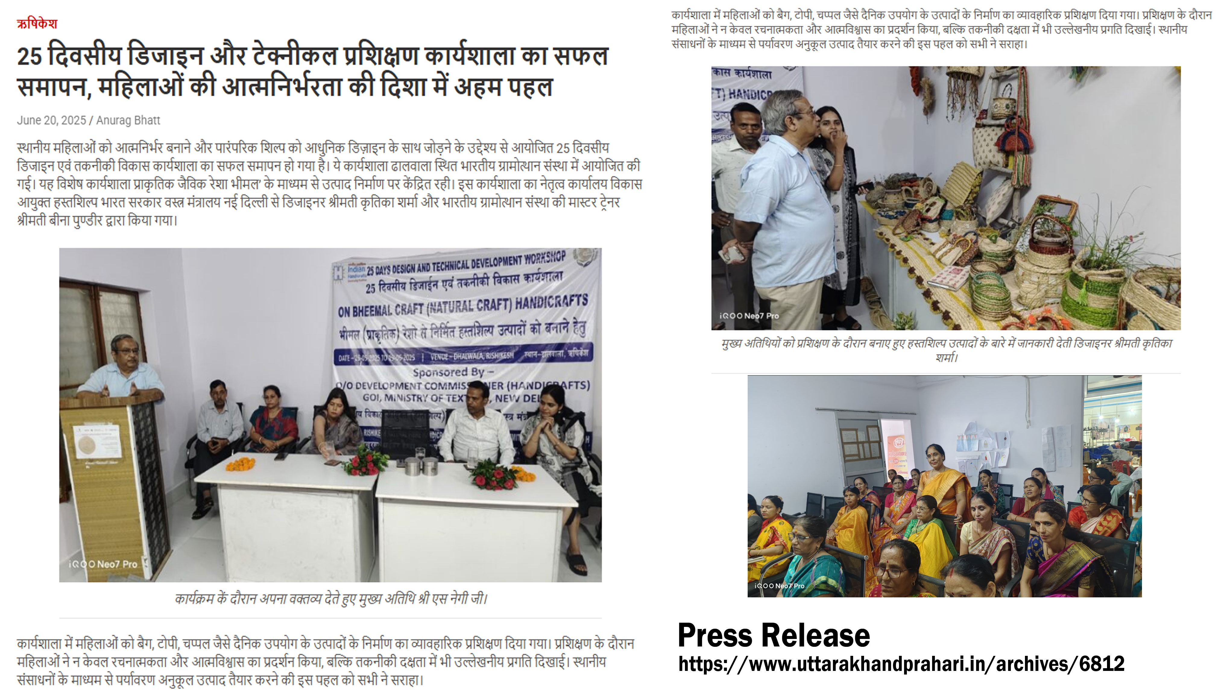 कार्यशाला का उद्देश्य महिलाओं को उत्तराखंड के प्रमुख प्राकृतिक रेशे भीमल के माध्यम से हस्तशिल्प उत्पाद बनाना सिखाना है।