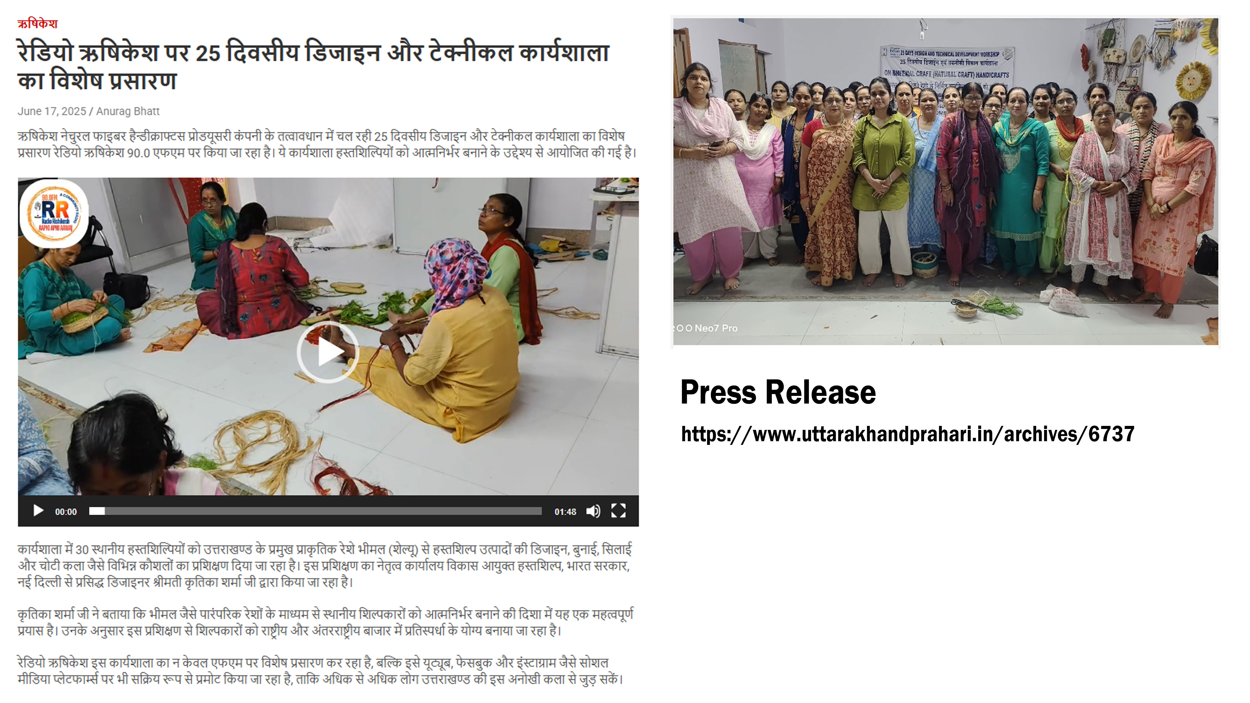 कार्यशाला का उद्देश्य महिलाओं को उत्तराखंड के प्रमुख प्राकृतिक रेशे भीमल के माध्यम से हस्तशिल्प उत्पाद बनाना सिखाना है।