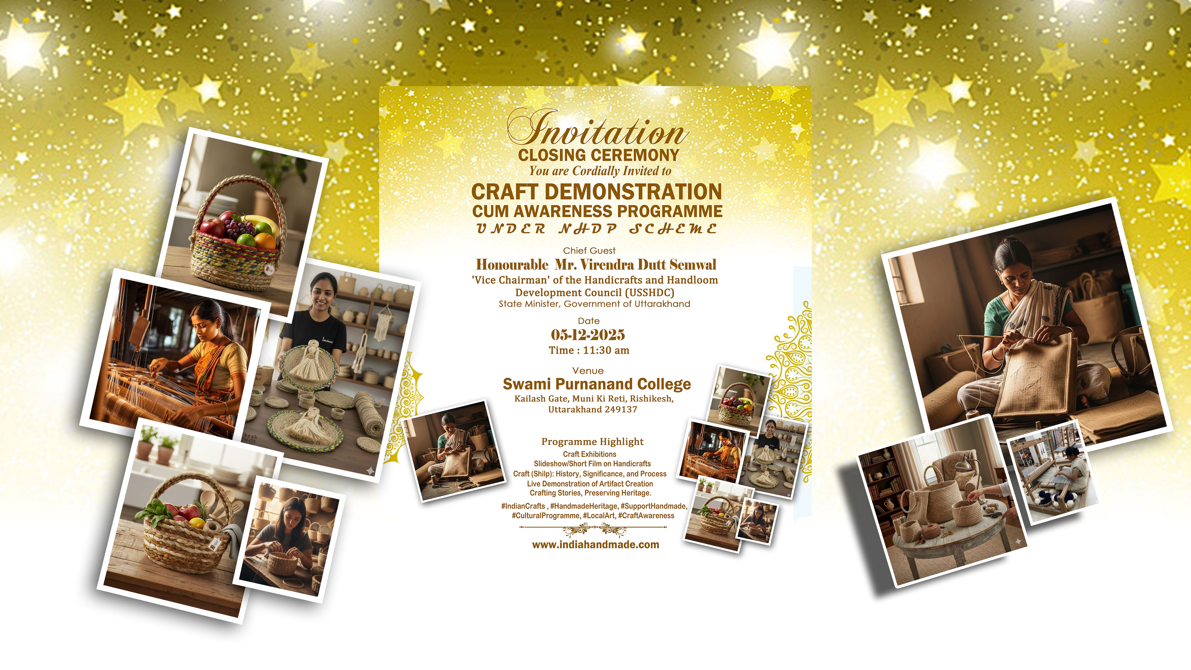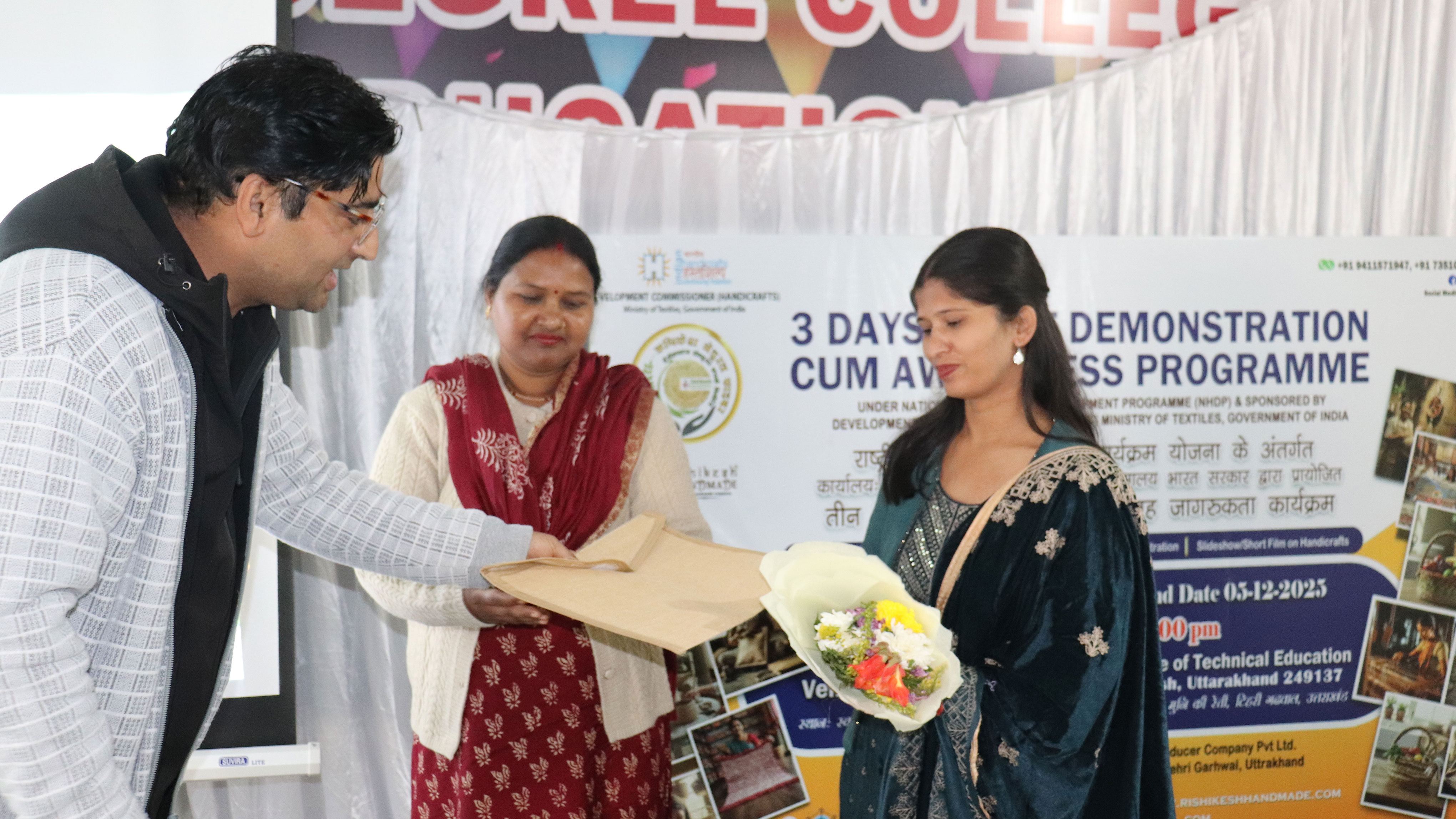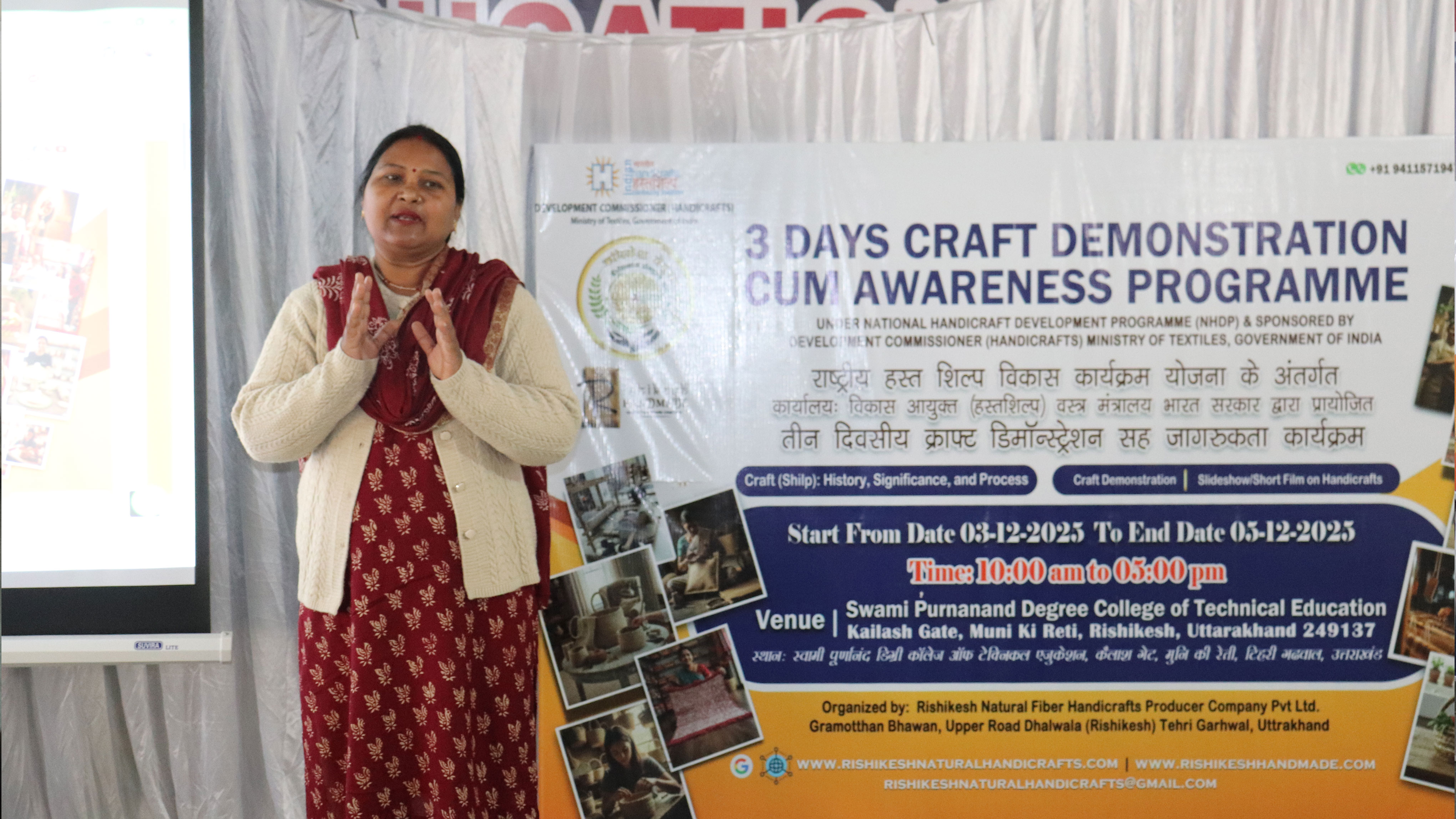The programme, sponsored by the Development Commissioner (Handicrafts), Ministry of Textiles, Government of India, and organized by M/s Rishikesh Natural Fiber Handicrafts Producer Company Limited, focused on showcasing handicraft demonstrations while also highlighting cultural well-being through Yoga, a core identity of Rishikesh.