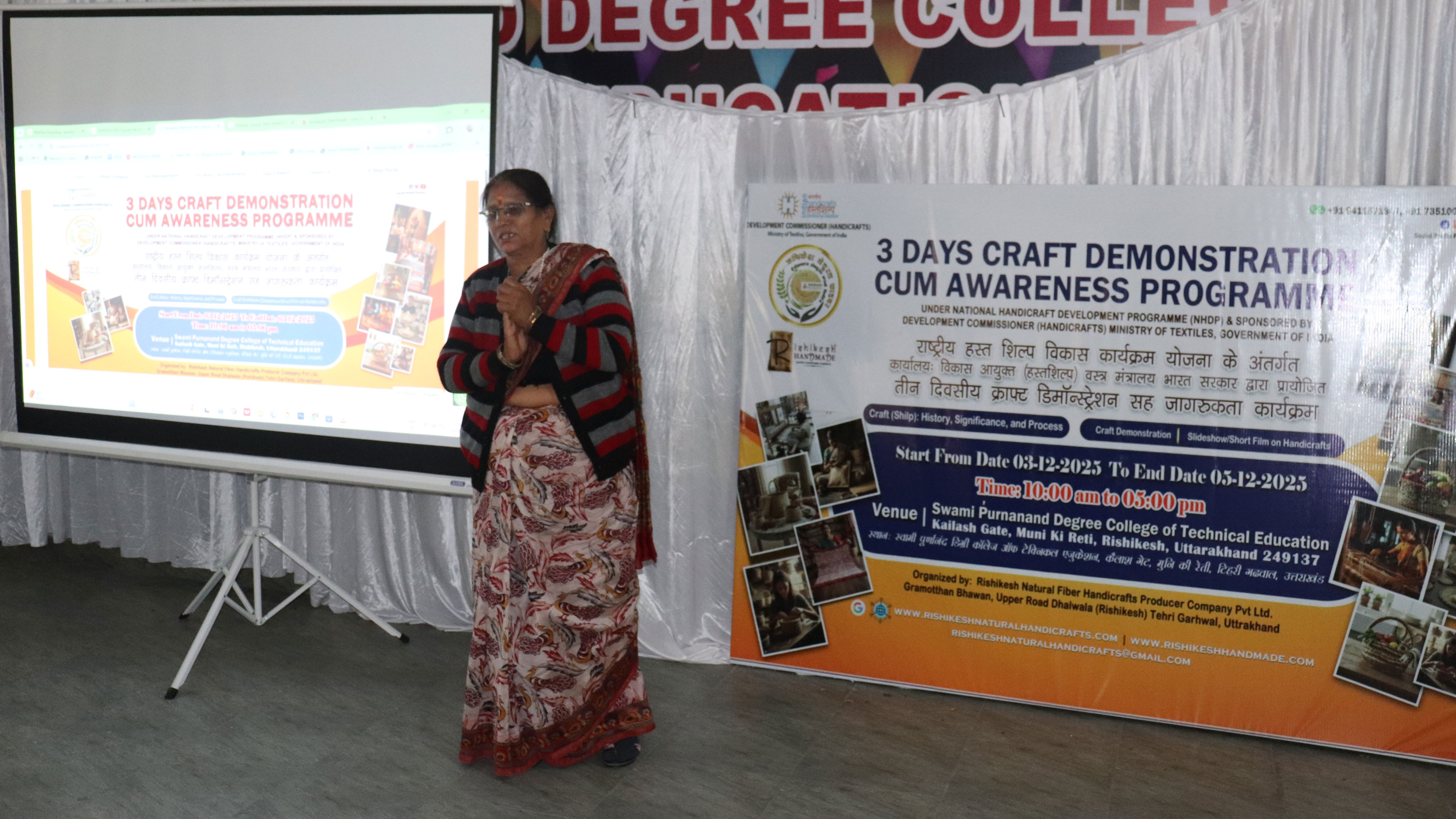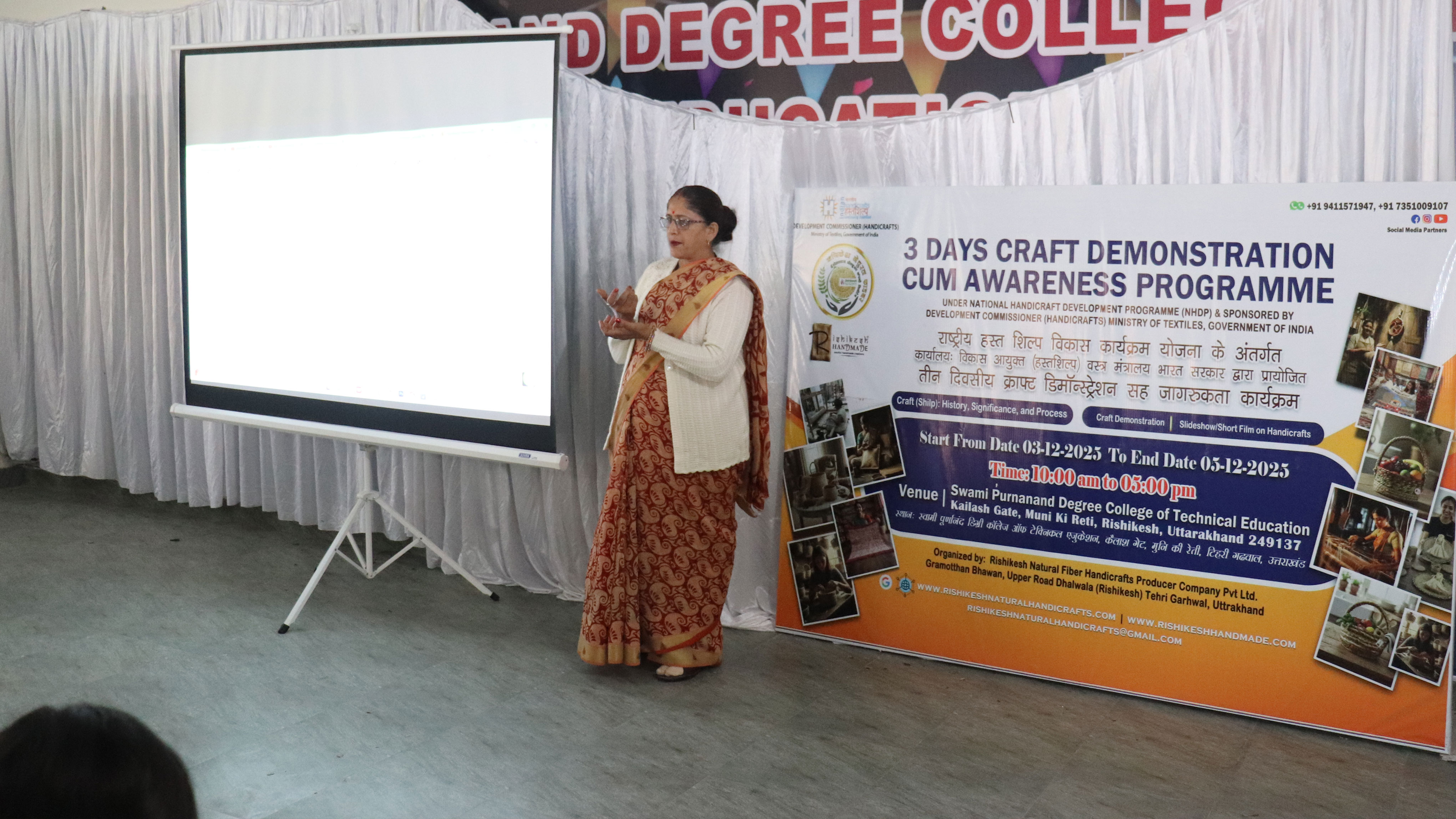 Rishikesh, December 5, 2025: Today marked the second day of the three-day Craft Demonstration-cum-Awareness Programme held at Swami Purnanand Degree College, Rishikesh. The event is dedicated to the preservation, promotion of traditional handicrafts, and the empowerment of students and artisans.