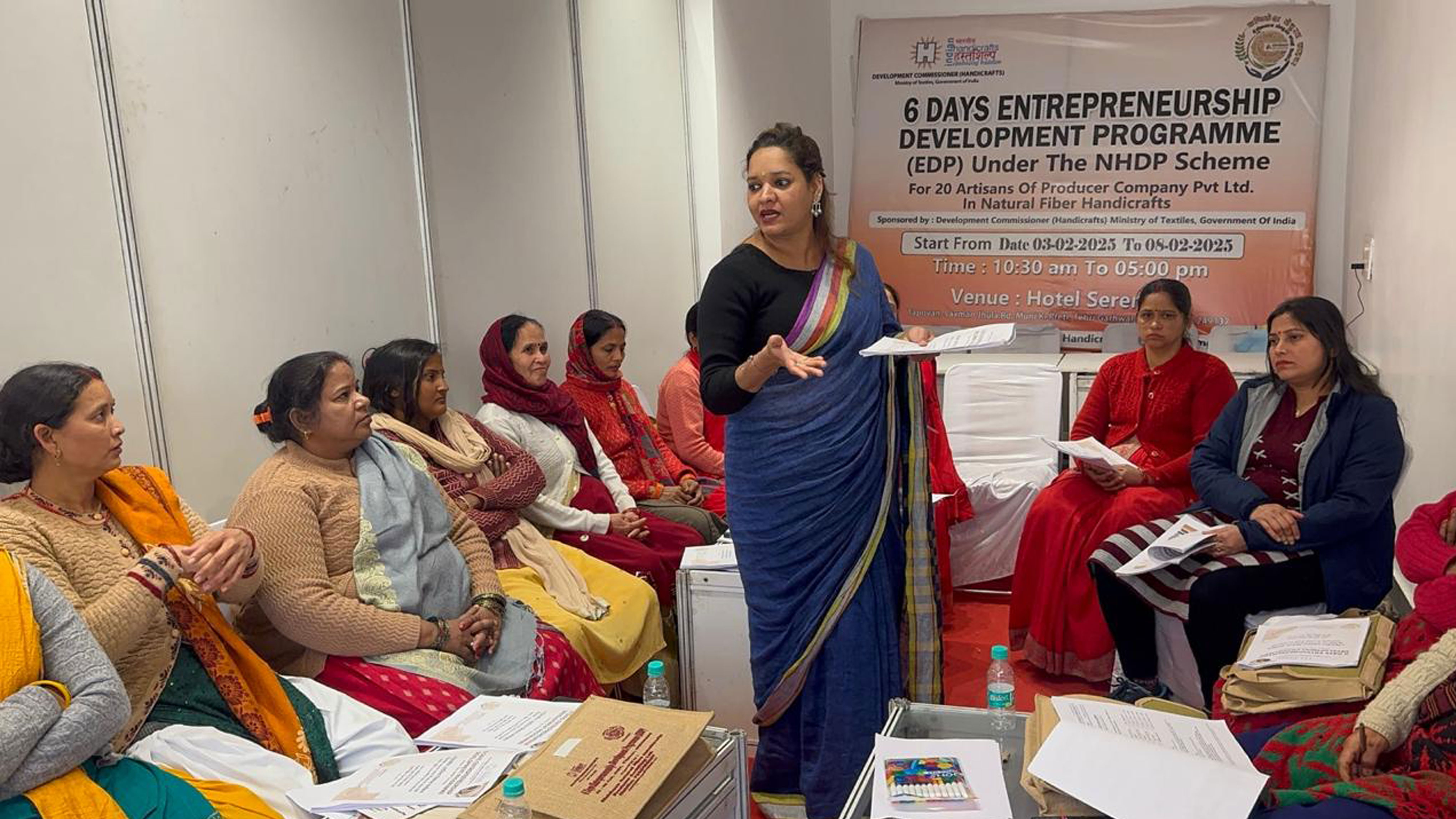 The 6-day Entrepreneurship Development Program (EDP) organized by Rishikesh Natural Fiber Handicrafts Producer Company Limited stands as a significant step toward empowering grassroots artisans and promoting sustainable entrepreneurship in Uttarakhand. With focused training, expert mentorship, and exposure to modern business practices, the program successfully bridged the gap between traditional craftsmanship and contemporary market demands. It not only enhanced the professional capabilities of participating artisans—especially women—but also aligned with the national vision of Atmanirbhar Bharat by fostering self-reliance and economic upliftment through skill development. The enthusiastic participation, impactful sessions, and strong institutional support made this EDP a model initiative for artisan-led growth and rural enterprise development.